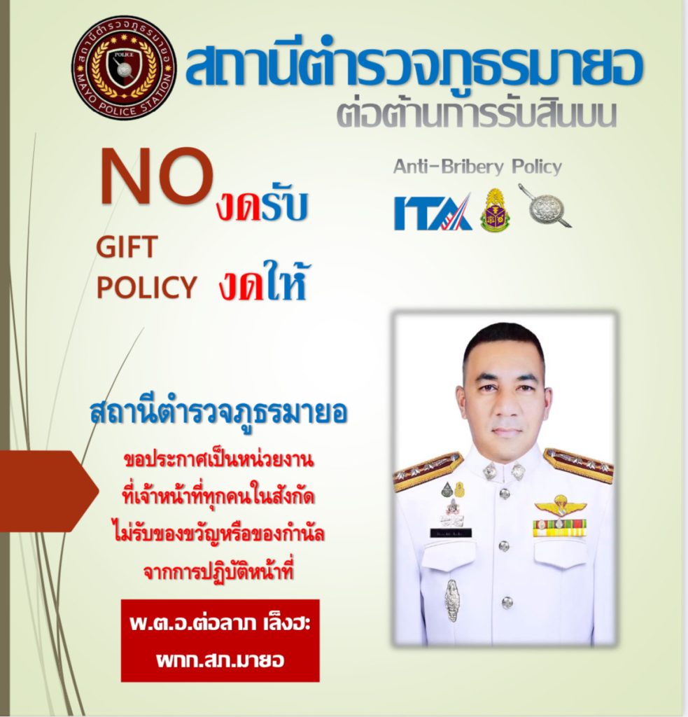 ประกาศสถานีตำรวจภูธรมายอ เรื่อง เจตนารมณ์ไม่รับของขวัญและของกำนัลจากกาารปฏิบัติหน้าที่