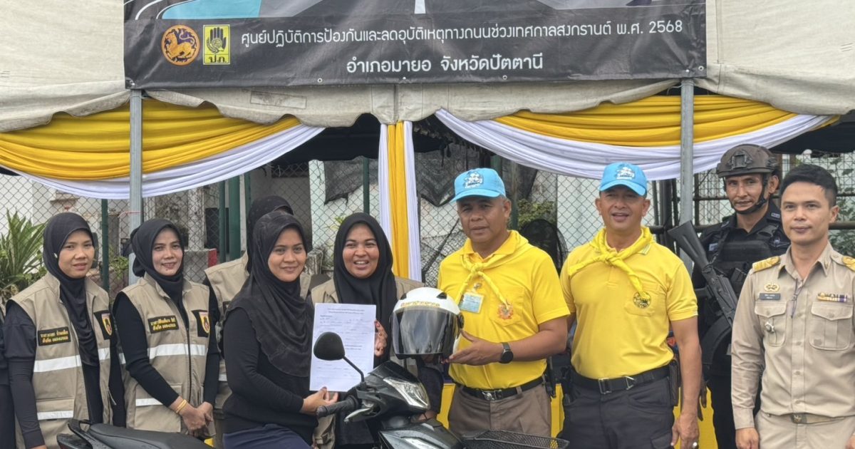 วันที่ 11 เมษายน 2568 เวลา 15.00 น. พ.ต.อ.ต่อลาภ เล็งฮะ ผกก.สภ.มายอ มอบหมายให้ พ.ต.ท.รมหลี ยากะจิ รอง ผกก.ป.สภ.มายอ ด.ต.แวหามะ แวหะยี ผบ.หมู่(ป.)สภ.มายอพร้อมด้วย ข้าราชการตำรวจจิตอาสา สภ.มายอ ทำกิจกรรมจิตอาสาประชาสัมพันธ์วินัยการจราจร การใช้รถใช้ถนน เมาแล้วไม่ขับ และข่าวสารต่าง ๆ จากสำนักงานตำรวจแห่งชาติ รวมทั้งอบรมกฎจราจร และแจกจ่ายหมวกนิรภัยให้แก่ประชาชน ตาม “ โครงการจิตอาสาจราจรรณรงค์การขับขี่ปลอดภัย สวมหมวกนิรภัย เพื่อลดอุบัติเหตุจราจรทางบก ในช่วงเทศกาลสงกรานต์ พ.ศ.2568 “ เพื่อลดอุบัติเหตุทางถนนช่วงเทศกาลสงกรานต์ 2568 “ขับขี่ปลอดภัย ไร้อุบัติเหตุ” ณ ศูนย์ปฏิบัติการป้องกันและลดอุบัติเหตุทางถนนช่วงเทศกาลสงกรานต์ อ.มายอ จว.ปัตตานี