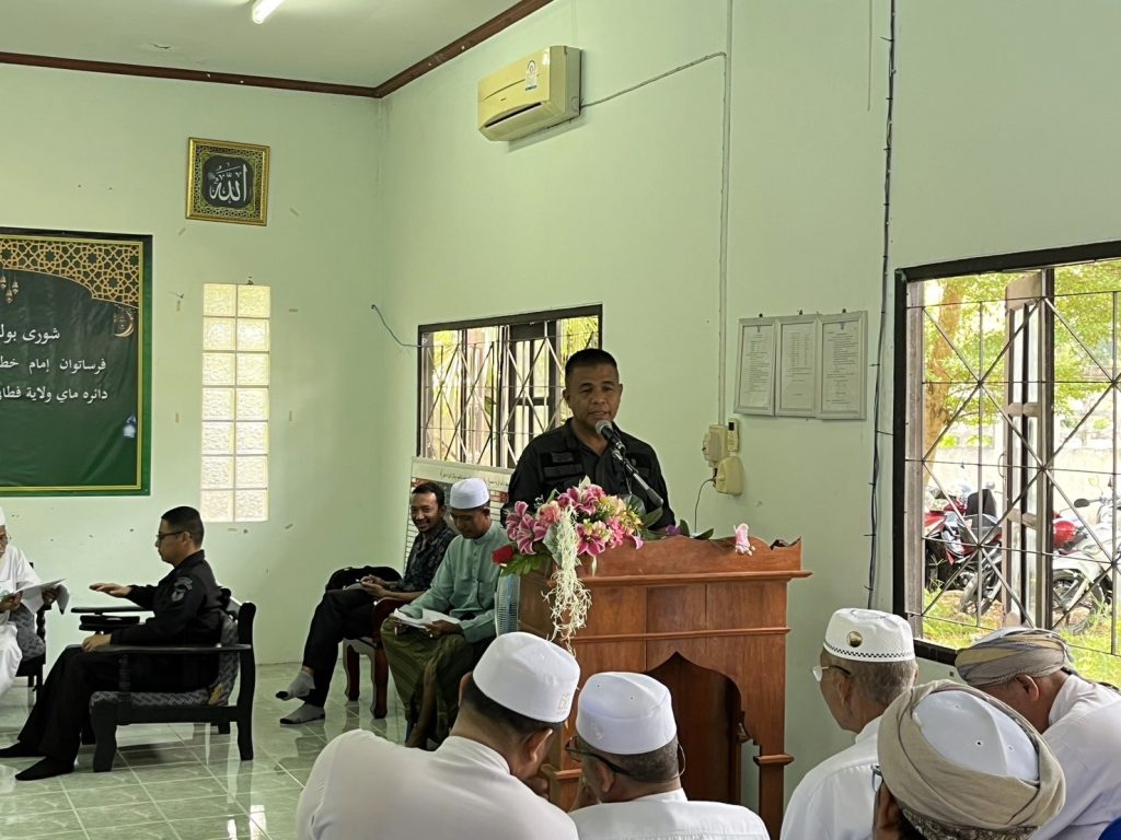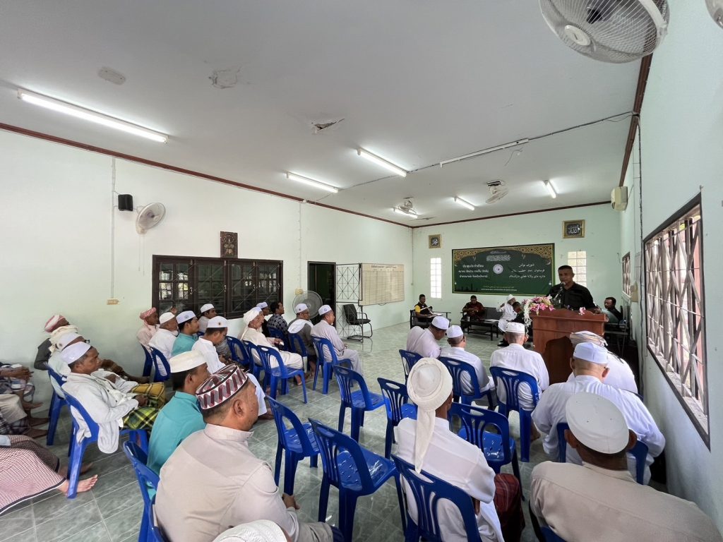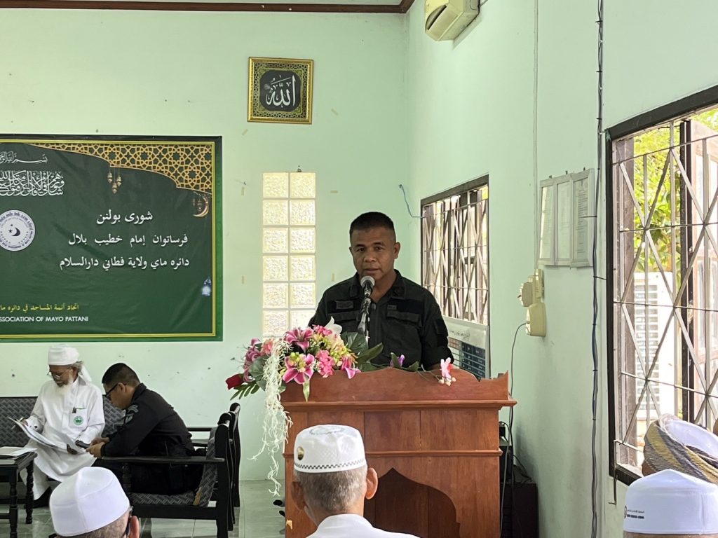 วันพฤหัสบดี ที่ 8 กุมภาพันธ์ 2567 เวลา 09.30 น. พ.ต.อ.สมศักดิ์ ตันเจริญ ผกก.สภ.มายอ มอบหมายให้ พ.ต.ท.รมหลี ยากะจิ รอง ผกก.ป.สภ.มายอ พร้อมด้วย ชุด ชมส.สภ.มายอ ร่วมพบปะผู้นำศาสนา เพื่อชี้แจงข้อราชการต่างๆ พร้อมสอบถามปัญหาข้อขัดข้องที่เกิดขึ่นในพื้นที่ และแสวงหาความร่วมมือในการแก้ปัญหาต่างๆ ในพื้นที่ร่วมกัน โดยมีนายอิสสะมาแอ ยะโกะ นายอำเภอมายอ เป็นประธาน ณ สมาคมอิหม่าม คอเต็บ บิหลั่น ต.มายอ อ.มายอ จ.ปัตตานี