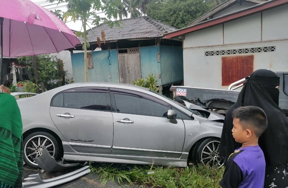 ร.ต.อ.นิกร หุ้ยล่อง รอง สว.สอบสวน สภ.มายอ ร้อยเวร 30 พร้อมพลขับ ตรวจที่เกิดเหตุ ต.เกาะจัน เส้นทางม่วงหวาน-มายอ