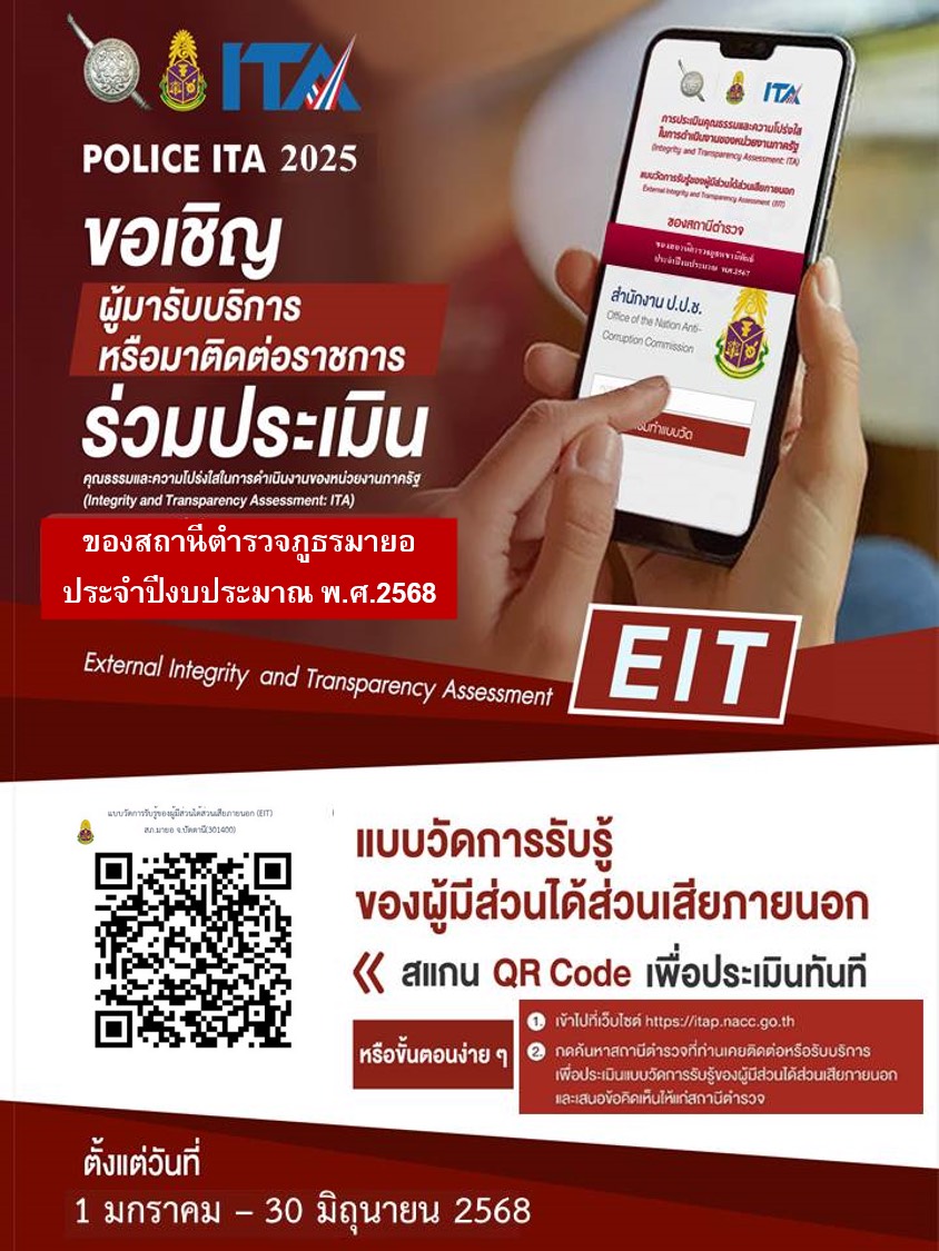 สถานีตำรวจภูธรมายอ เชิญชวนร่วมทำแบบวัดการรับรู้ของผู้มีส่วนได้ส่วนเสียภายนอก (EIT)